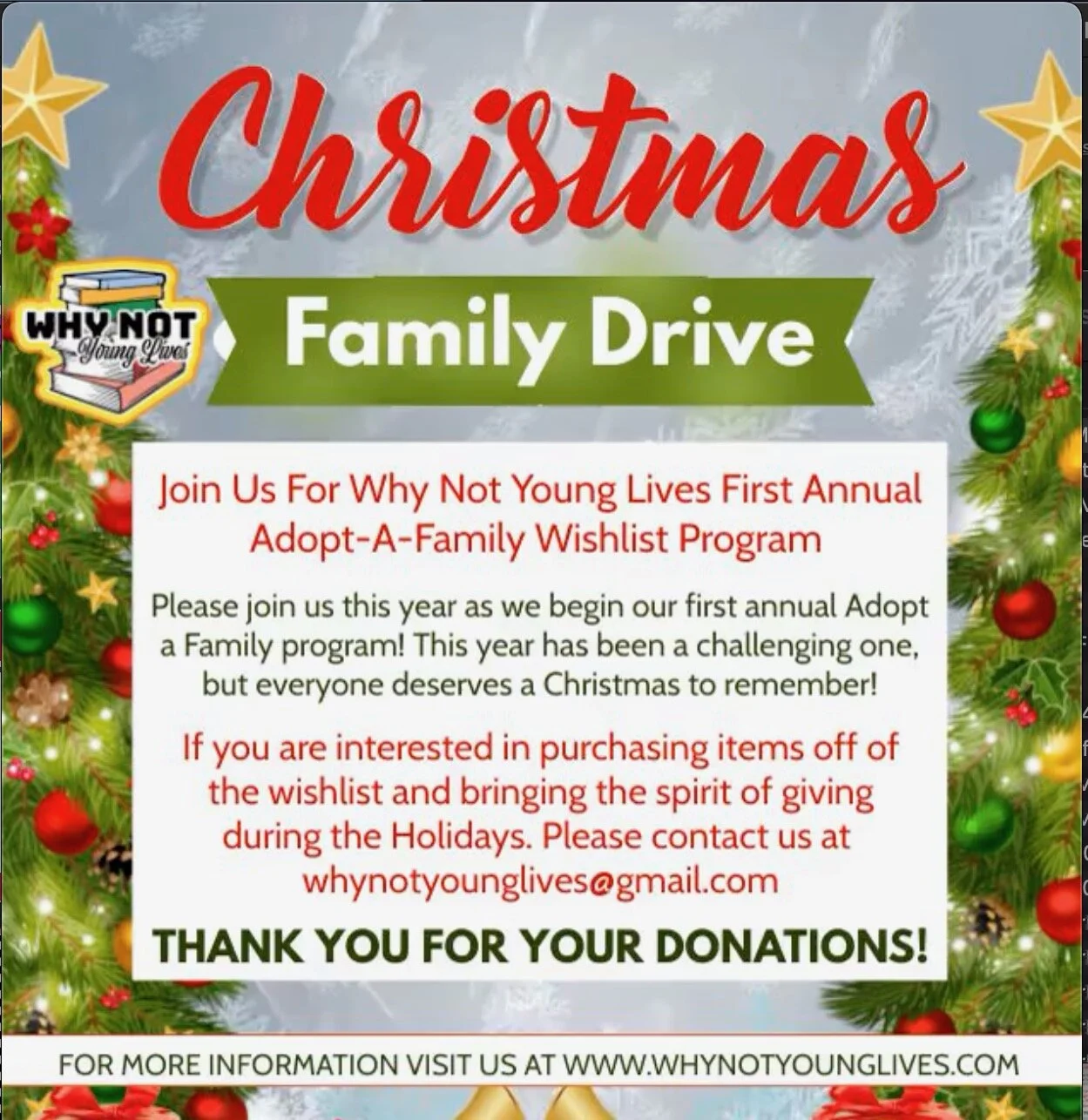 Dreams Turned Reality A Night of Improv Comedy Adopt-A-Family Drive Holiday Drive 2020 Back to School Drive Saved By The Brunch Why Not Awards Show Highway Clean Up The Farewell Brunch